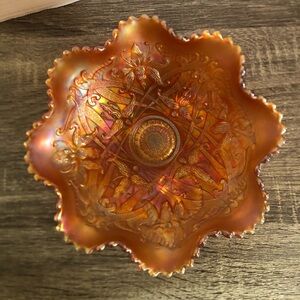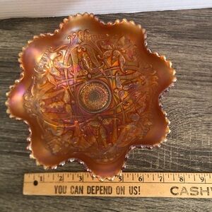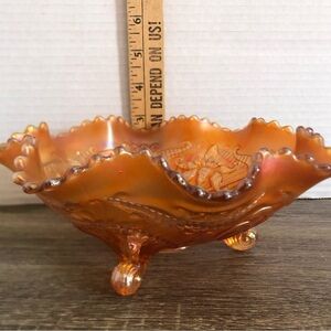 Antique Northwood Iridescent Marigold Wishbone Footed Glass Bowl