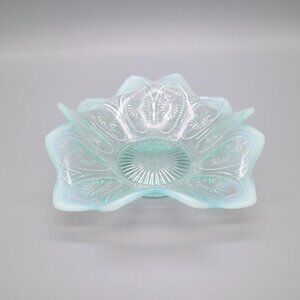 Antique Northwood Spokes and Wheels Pattern Blue Opalescent Glass Bowl c1906