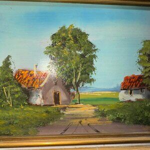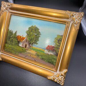 Antique Original Oil Paintings on Board Dutch Landscape by H. Wester Wood Frames