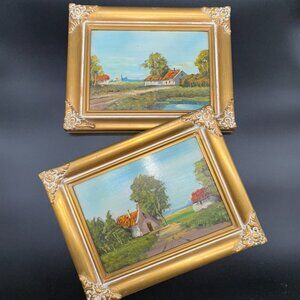 Pair of 2 matching Landscape Oil Painting by H. Wester of a Charming Dutch Holland Farm