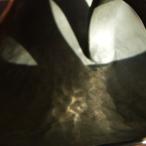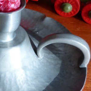 This is an old hand hammered pewter candle holder.