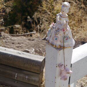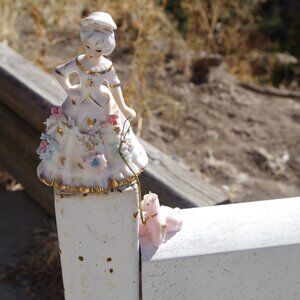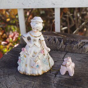 Antique porcelain lady with poodle from Japan,stamped.No cracks or chips good condition.Lefton 1950s spaghetti poodles.