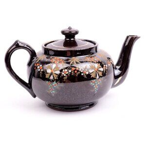 Antique Price Bros Mini Teapot England M&M Redware British 1900s Floral Glazed