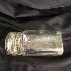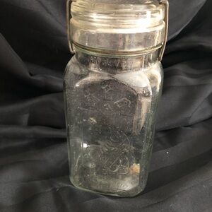 Early 1900’s quart sized canning jar. Not recommend to use for food storage or canning due to age.