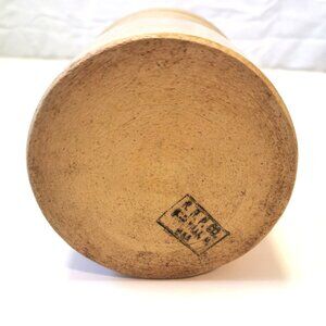 This size is highly sought after by collectors because it is perfectly suited for use as a kitchen utensil holder, a countertop flower vase, or a shelf display piece. Unlike modern reproductions, this piece features the authentic impressed maker's mark on the bottom and the substantial weight associated with genuine Ohio valley clay.