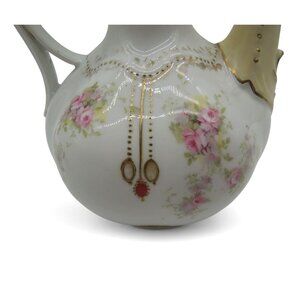 This exquisite R.S. Prussia chocolate pot showcases a delicate pink floral pattern with elegant gold accents.