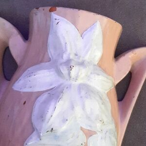 Overpainted salmon pink ontop of glaze Roseville Clematis wall pocket, 1940s.