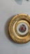 Elegant gold decorative plate featuring a classical scene in the center. Perfect for wall display.