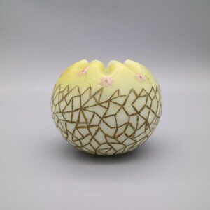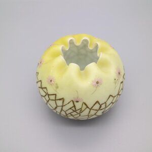 Antique Satin Glass Rose Bowl Vase Yellow Satin Hand Painted Flowers est. 1890