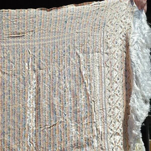 Brought back from a "Round the World Trip" by my Great Grandfather in the 1950's. It may have been new when he bought it, or it may already have been old. We just don't know. Given the era, we suspect that this was hand woven by an Artisan. It has been in storage for decades, possibly since it was bought. We have never seen anyone wear or use it. We also had never seen it until we started the downsizing! Its not the kind of thing that any of the women in our family would have bought themselves.