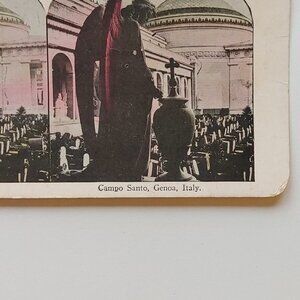 Antique Stereograph Card "Campo Santo, Genoa, Italy" Colour Card
