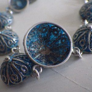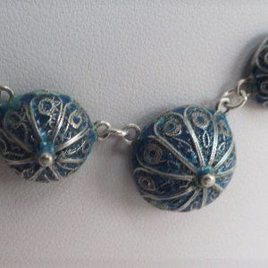 Antique Sterling Silver Enameled 1910 Necklace Choker