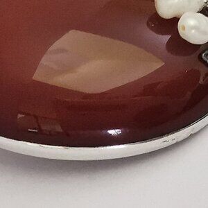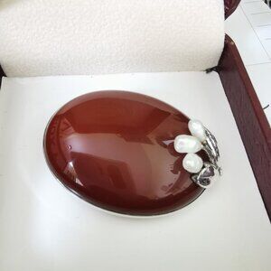 Antique Sterling Silver Signed Carnelian with Pearls Brooch