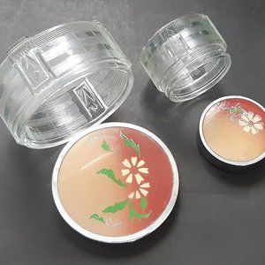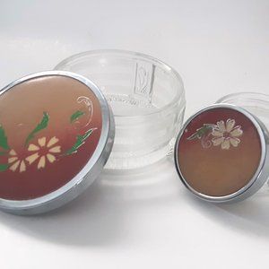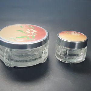 Antique VTG ART DECO Clear GLASS Vanity Powder Box Trinket Metal Lid Set of 2