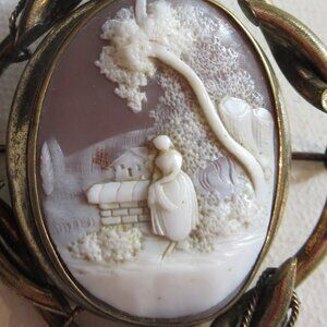 Rebecca at the well, Antique Mourning Cameo Broach/Pendant. Circa mid-to-late 19th century (1800s)