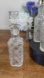Each bottle showcases intricate geometric cutwork and finely fitted silver-plated tops, resting securely in an engraved floral and geometric tray with detailed corner posts and a decorative handle.