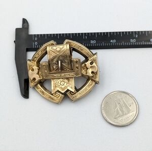 Incredible antique Victorian belt buckle style engraved brooch pin. Exquisite details. Not solid gold.