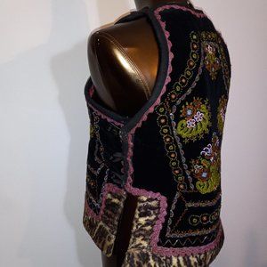 Beautiful, antique, vintage beaded Hungarian vest that I bought in Budapest in 1990 from some old woman at a market. I do not know more about the cultural provenance or background about this piece, other than it is beautifully handmade and intricately hand-beaded. I am not Hungarian, so someone from that ethnicity may know more about this type of garment.