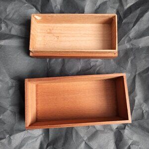 Handmade, box joints. Light to handle. Pressure fit top to bottom. Great for recipes, momentos, trinkets and odds / ends.