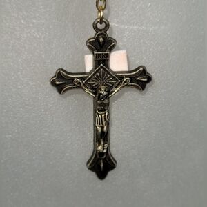 Antique Vintage Red Beads Rosary Saint Therese and crucifix with red pouch