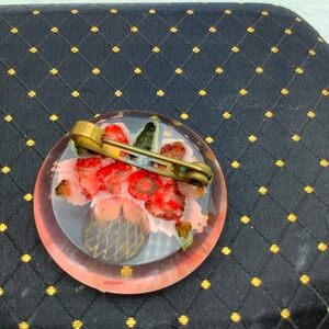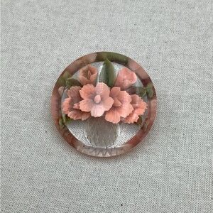 Beautiful Reversed carved brooch early 20th century. Probably the most beautiful I have ever seen. It is in very good condition, 1 and 3/4” across and has an old brass c clasp.