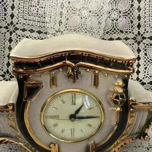 Antique Vintage Sessions Ceramic Table Clock Oxford Metal Spinning Clock