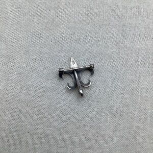 Add a touch of elegance with this silver fleur-de-lis brooch. Perfect for any occasion. Old Sterling and stamped this may have been for a woman or a man. There is a loop to hold a charm or maybe a watch chain from the 1920’s. It is 1 inch tall.