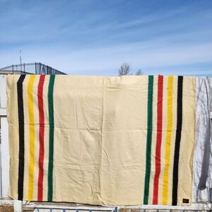 Antique Whitney England Early's Settler Hudson's Bay Stripe 100% Wool Blanket