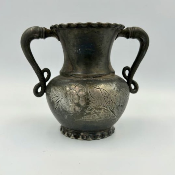 Antique Wilcox Silverplate Quadruple Plate Vase Urn 4" Snake-Scale Handles