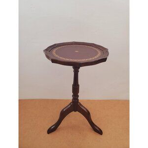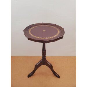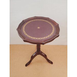 Pie Crust Leather Top Wood Side Table Vintage Bombay Company Plant Stand