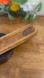 Weathered natural wood with rich patina, aged oxidized steel blade.