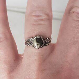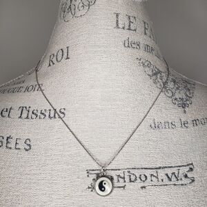 Late 20th century traditional Tibetan Yin & Yang Silver & Gold Pendant with matching Silver Ring and Antique 20s, 16" Silver Chain Necklace, stamped 925.