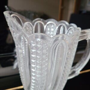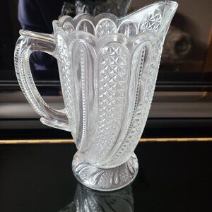 Antique clear glass pitcher EAPG Victorian Mckee Bros Doric swirl pattern.