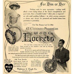 My research tells me that Wightman & Hough Company of Providence, Rhode Island, made sweetheart necklaces from 1856 until 1922. They were primarily renowned for their lockets. Their slogan, was “There’s a heart in every locket!” I've attached some pictures of the company's locket ads, which I really love!