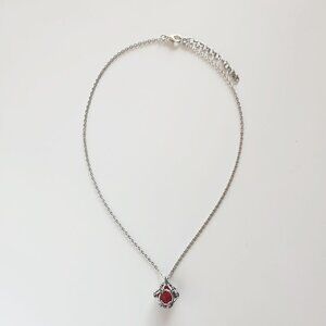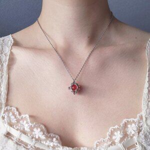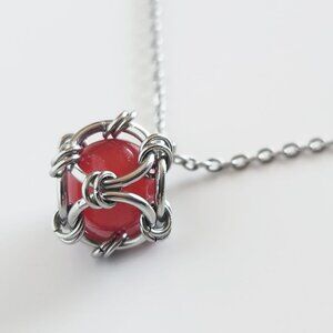 Antique gothic red pearl chainmaille necklace with a small silver chain