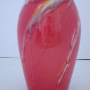 Antique vintage pink flower vase that sprays blues, white and hint of autumn yellow made by the reputable H & K Tunstall that was made in our historic England. Another piece of pottery of excellence made by another artist of old. This gorgeous vase stands 6 1/4" [16cm) High x 3.5" wide (9cm) x 2.5" (6cm) W across vase lip.