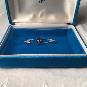 Very pretty Victorian sterling silver and amethyst brooch. Stamped on back. Measures 2 inches wide by.5 inches tall.