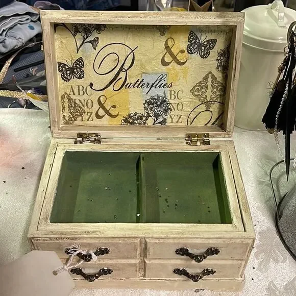 Antiqued Cream Butterfly Musical Box