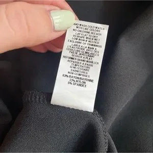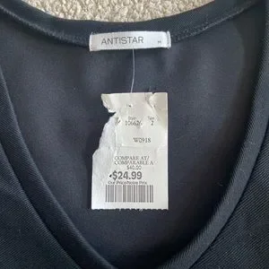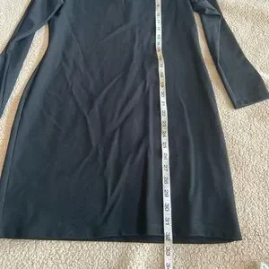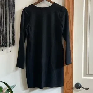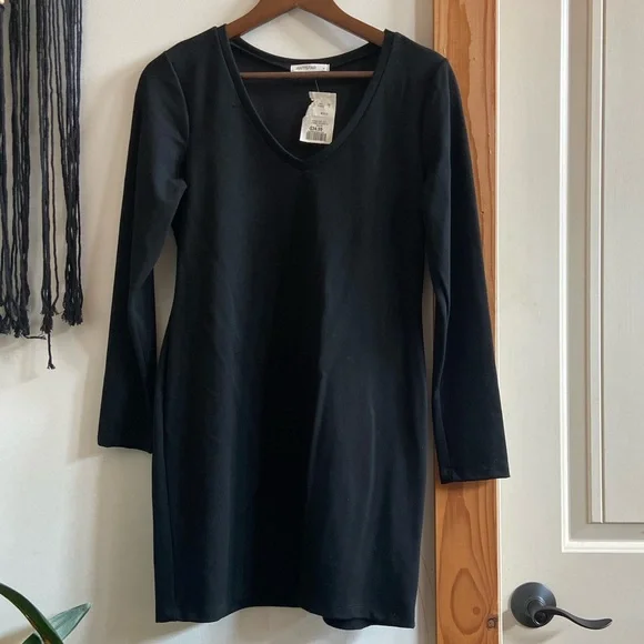 Basic black v-neck long sleeve dress, nice thick material. Size medium. Brand new with tags (sorry my cat chewed on this tag). Originally bought from winners for $24.99.