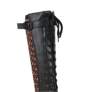 Antonio Melani Boots Women's Size 6 Black Logo Print Tall Combat Lug Sole