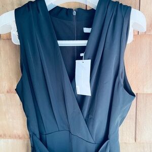 Amazing Black Jumpsuit excellent quality sleeveless model, lined top, pleats at the shoulders that drape beautifully on the wrap, a belt is tied at the waist in the front, straight cut trousers
