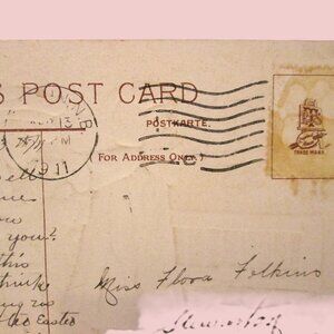 The Post Card is in great shape, just a very, very slight bend on two opposite corners that is just normal usage from having something over 100 years old. Note that the card is two-dimensional, unique to the time period of 1900s. A silver embossed post card. Quite unique.