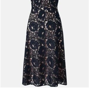 Designed in intricate floral lace with a nude illusion layer Round neck, racer-style back, flared skirt and a midi length