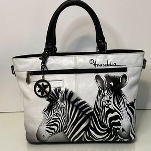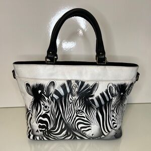 Anuschka Purse Genuine Leather Hand Painted Zebra Purse Bag Crossbody