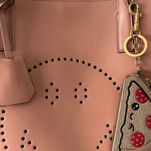 Anya Hindmarch Pink Smiley Tote with Pizza accessory