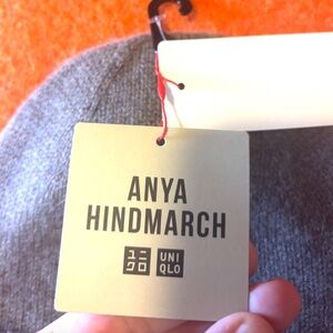 Anya Hindmarch Uniqlo collab brown 100% cashmere knitted beanie hat tuque NWT