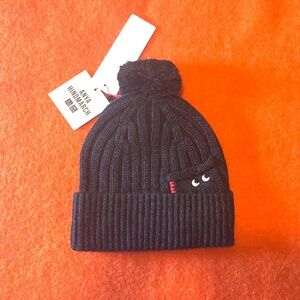 Anya Hindmarch Uniqlo collab dark grey touch of wool heattech pompom beanie hat tuque new with tags. HEATTECH fabric with Heat of Absorption and HEAT RETENTION features, added nylon creates a smooth feel, hand washable, chunky knit with a stretchy ribbed brim, iconic eye embroidery and small pocket above the brim, hand-stitched look. 80% Acrylic, 10% Nylon, 9% Wool, 1% Spandex. Colour is accurate in the stock photos, mine are taken in artificial light. Marked One size, please see pics for measurements. This item comes from a smoke free, pets friendly home. Recycled bags/box used when possible. Please, let me know if you'd like any additional pictures and/or measurements or other info. Thanks for watching!