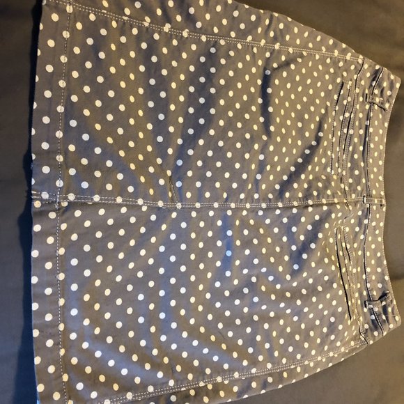 Excellent condition. Very cute Apanage white polka dots denim skirt. Above knee length.