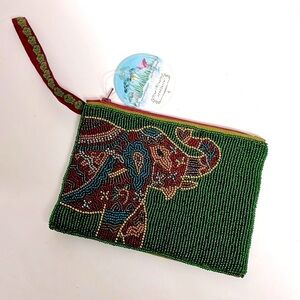 Aphorism beaded elephant clutch