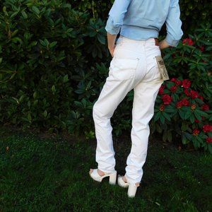 Vintage deadstock Appaloosa denim. All are new with tags. White with gold saddle stitching. Classic 5 pocket style. Straight loose leg. Button fly. Long inseams.